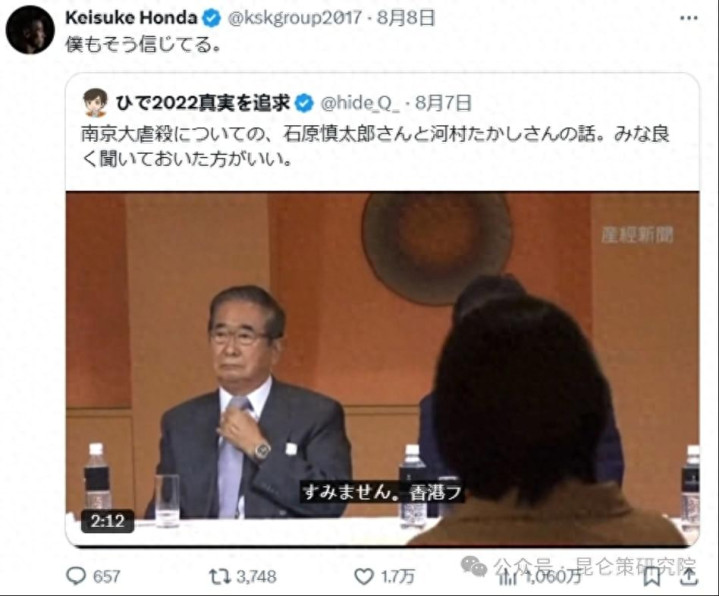 很典型的一个,就是日本前国脚本田圭佑,他在社交平台上,把自己前一天刚发的“南京大屠杀不存在”言论给“打脸”了。